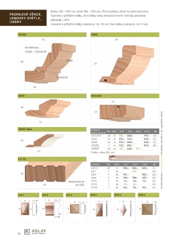 Délky 180 – 305 cm, smrk 180 - 400 cm, 15% krátkého zboží na balící jednotku.
