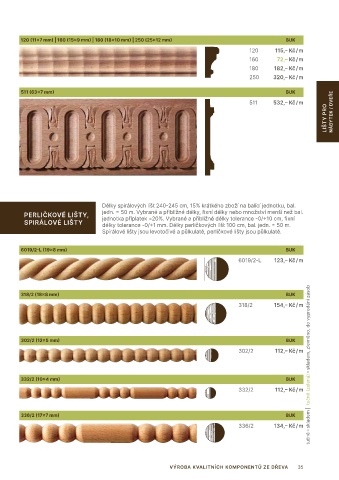 Spirálové lišty jsou levotočivé a půlkulaté, perličkové lišty jsou půlkulaté.