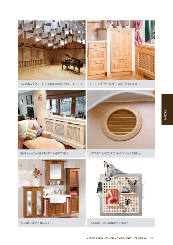 ZAJÍMAVÝ VZHLED I AKUSTICKÉ VLASTNOSTI KUCHYNĚ VE VENKOVSKÉM STYLU MŘÍŽKY BÍLE LAKOVANÉ KRYTY RADIÁTORU VĚTRACÍ MŘÍŽKA Z MASIVNÍHO DŘEVA ČELNÍ DVÍŘKA NÁBYTKU FUNKČNÍ DESIGNOVÝ PRVEK VÝROBA KVALITNÍCH KOMPONENTŮ ZE DŘEVA 49