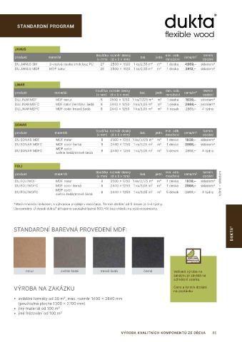 STANDARDNÍ BAREVNÁ PROVEDENÍ MDF: