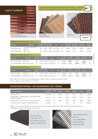DUF.JANUS MDF MDF natur 26 2500 × 1020 1 ks/2,55 m² m² 5 desek 4773,– 5031,– 6 týdnů