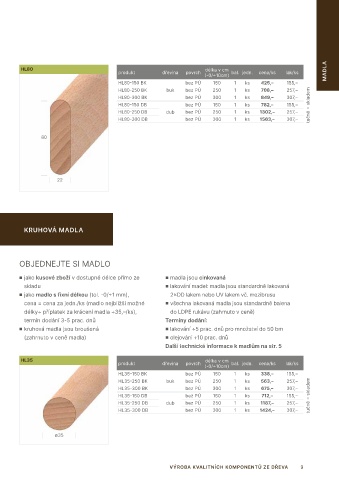 produkt dřevina povrch bal. jedn. cena/ks lak/ks MADLA